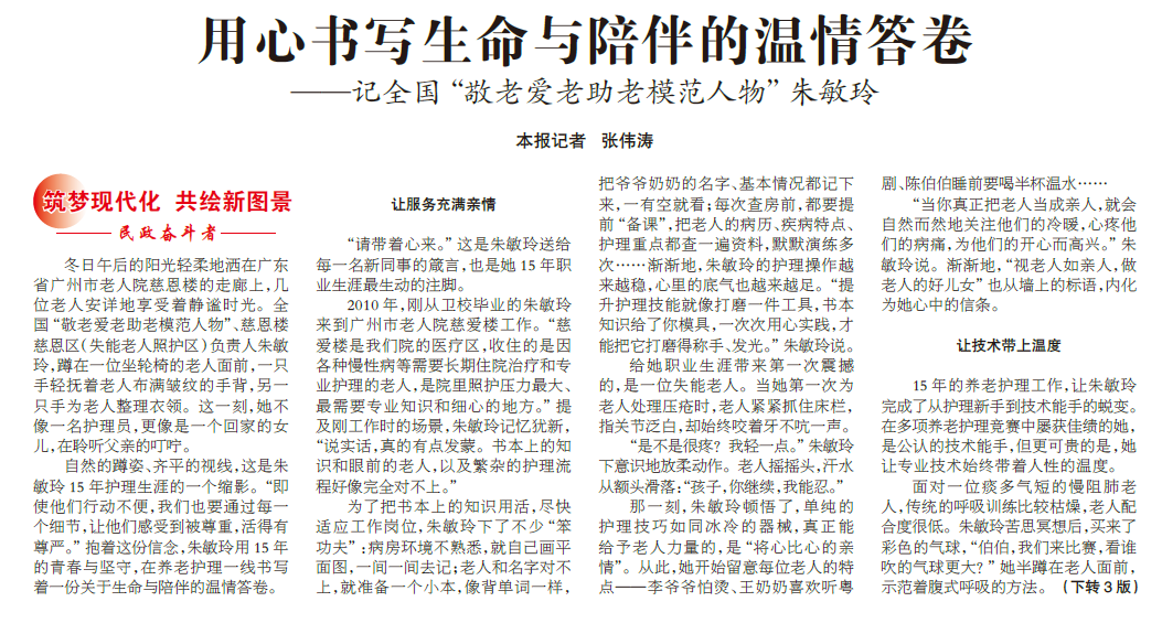 媒体关注 | 用心书写生命与陪伴的温情答卷——记全国“敬老爱老模范人物”朱敏玲