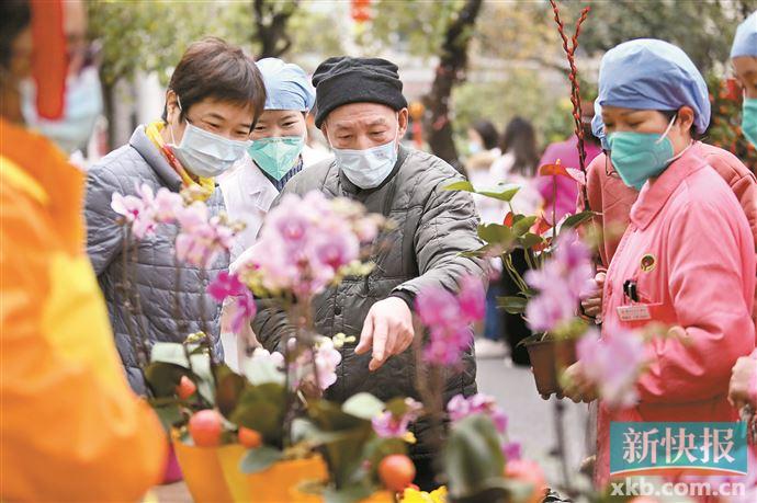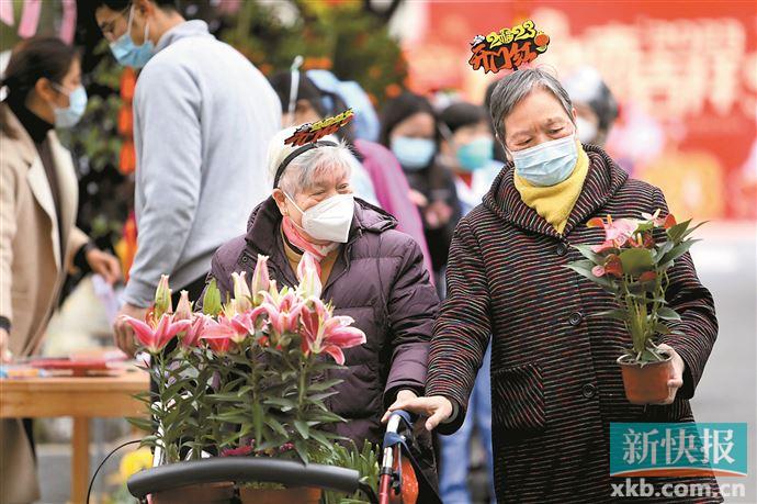 ■“你推着轮椅,我扶着你”,老人院的花市上,温馨的场景随处可见。