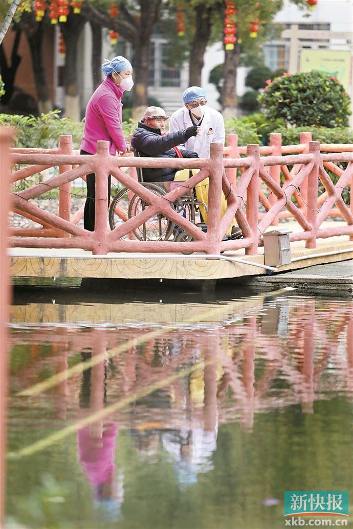 ■春节前,护理员朱丽儿和老年病治疗中心谢志海推着萧伯游花园。